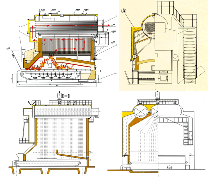 4.采用八字烟道布置、使烟气流程更加合理,不仅提高了传热效率、同时也保证了锅筒下不不直接受火焰辐射、延长了锅炉使用寿命。