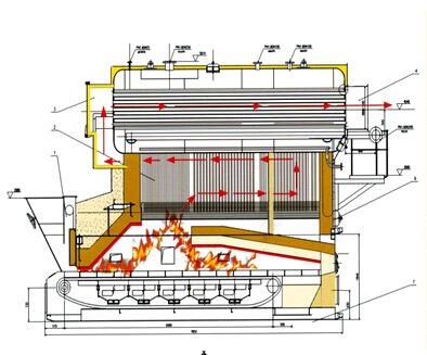 | DZL系列锅炉: 产品简介: 本系列锅炉是我公司主导产品,目前已全部更新换代,该系列锅炉目前在单锅筒系列产品中具有国内先进水平。在我国有锅炉泰斗之称的、同时也是该系列产品的奠基人之一的李之光教授,给予我公司全方位的科研支持。 产品特点: 1.锅炉本体采用新型拱形管板,改善了管板的应力水平,大大提高了锅炉使用寿命。 2.锅炉循环方式为自然循环、采用回水引射装置,水循环安全可靠。 3.烟管采用高效传热原件即螺纹烟管、大大提高了传热效率。 4.采用八字烟道布置、使烟气流程更加合理,不仅提高了传热效率、同时也保证了锅筒下不不直接受火焰辐射、延长了锅炉使用寿命。 5.由于炉膛后部设置灰尘粗分离转向室,而且炉膛容积大,则可确保锅炉原始排尘浓度低于标准允许值、减轻了除尘设备的负担,锅炉机组综合排放达到国家标准。 DZL系列蒸汽锅炉2-6t/h |